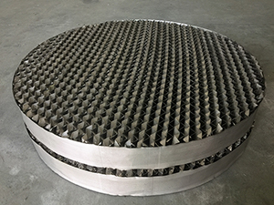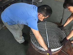 我司質(zhì)量檢測人員對孔板波紋填料進行檢測