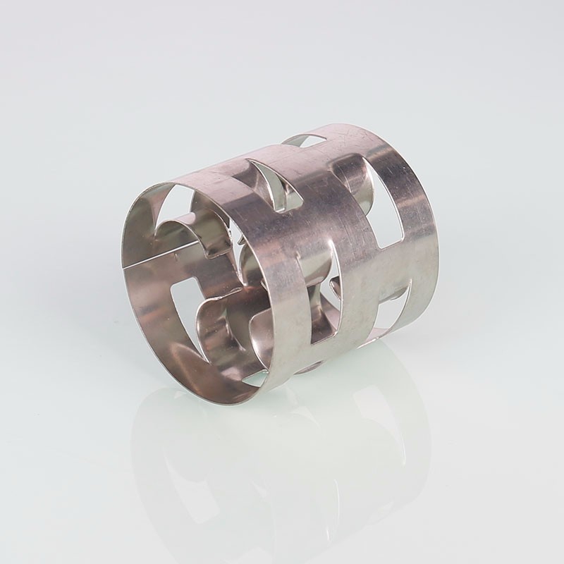 金屬鮑爾環(huán)填料是本世紀(jì)四十年代德國BASF公司開發(fā)的采用金屬薄板沖制而成,一般開孔的總面積約為整個環(huán)壁面積的35%左右。與同規(guī)格的拉西環(huán)填料相比,由于鮑爾環(huán)填料在環(huán)壁上開了許多窗孔,使得塔內(nèi)的氣體和液體能夠從窗口自由通過,所以填料層內(nèi)的氣、液體分布情況比拉西環(huán)填料有了較大的改善,其分離性能明顯提高,幫鮑爾環(huán)填料仍是目前被采用的主要環(huán)形填料之一。我廠生產(chǎn)的金屬鮑爾環(huán)特性參數(shù)如下: